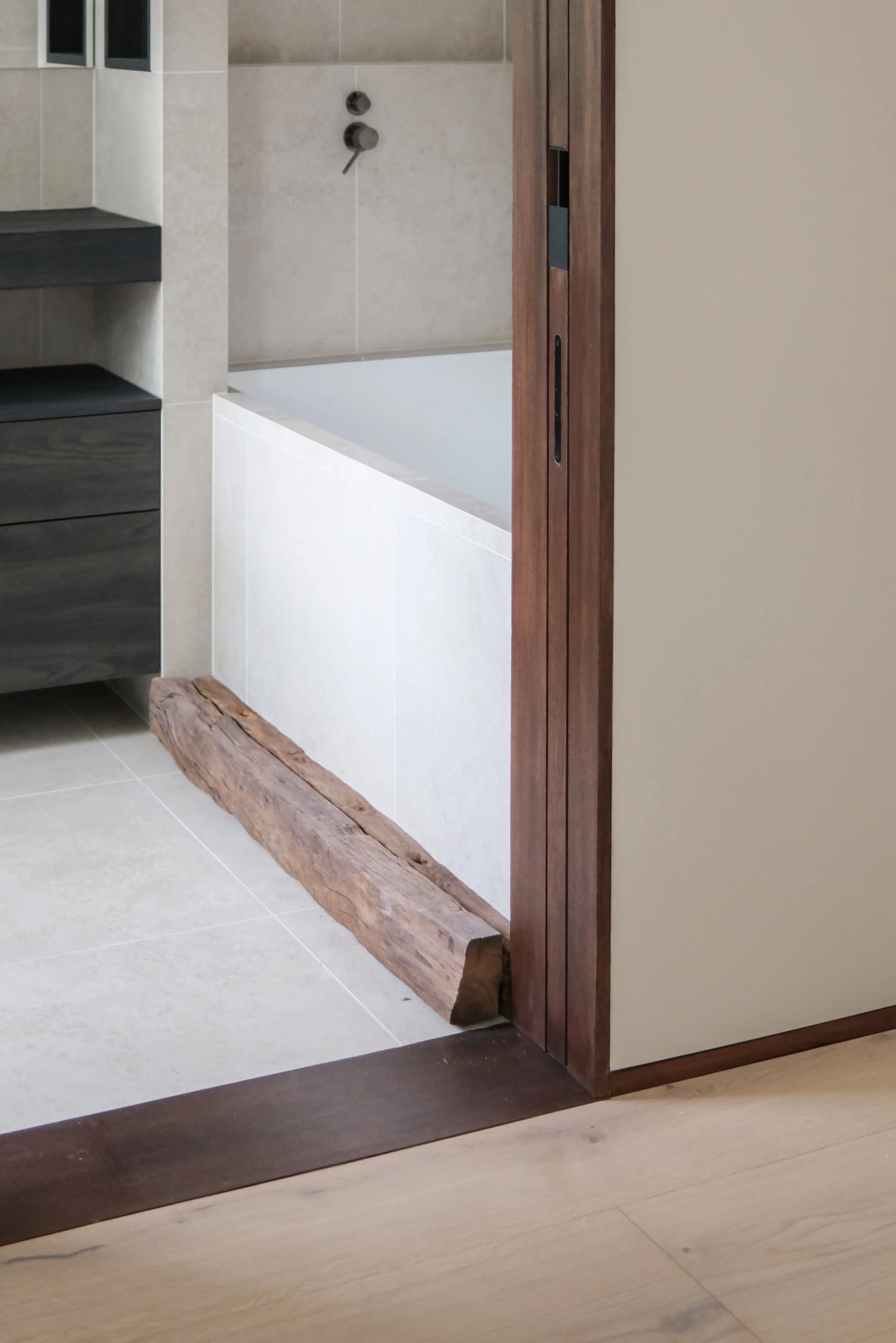 Exposed oak beams that guide you between levels, a hidden ‘speakeasy’ style threshold into the study space, exposed internal brick walls, and wooden framed openings that capture the essence of transition between spaces.