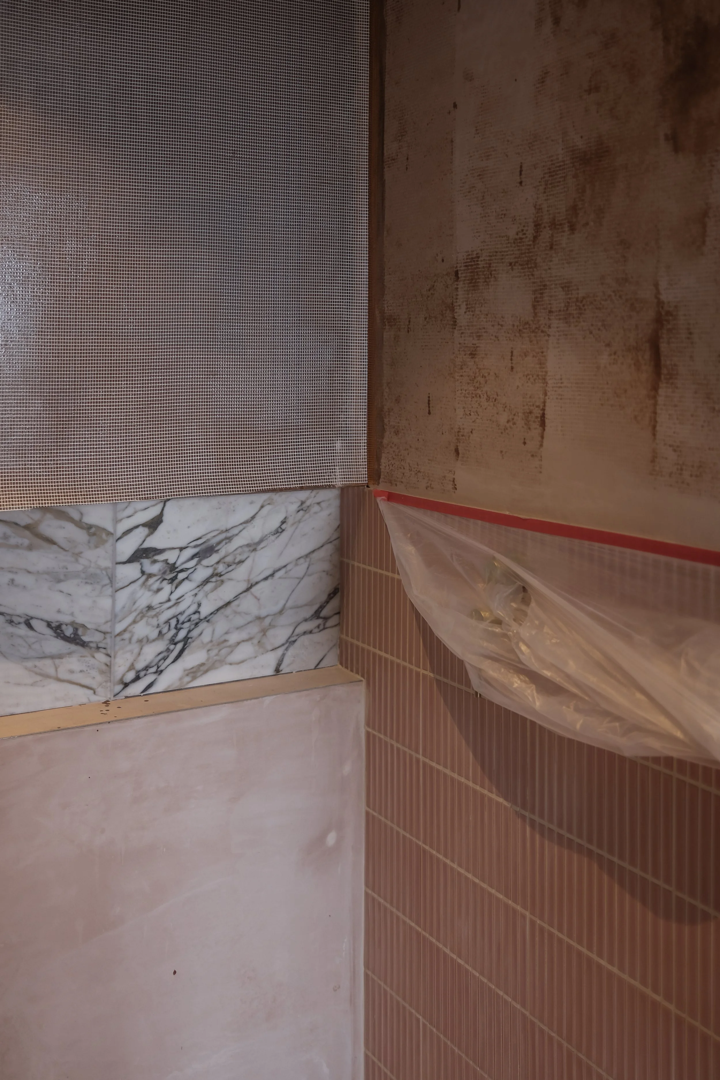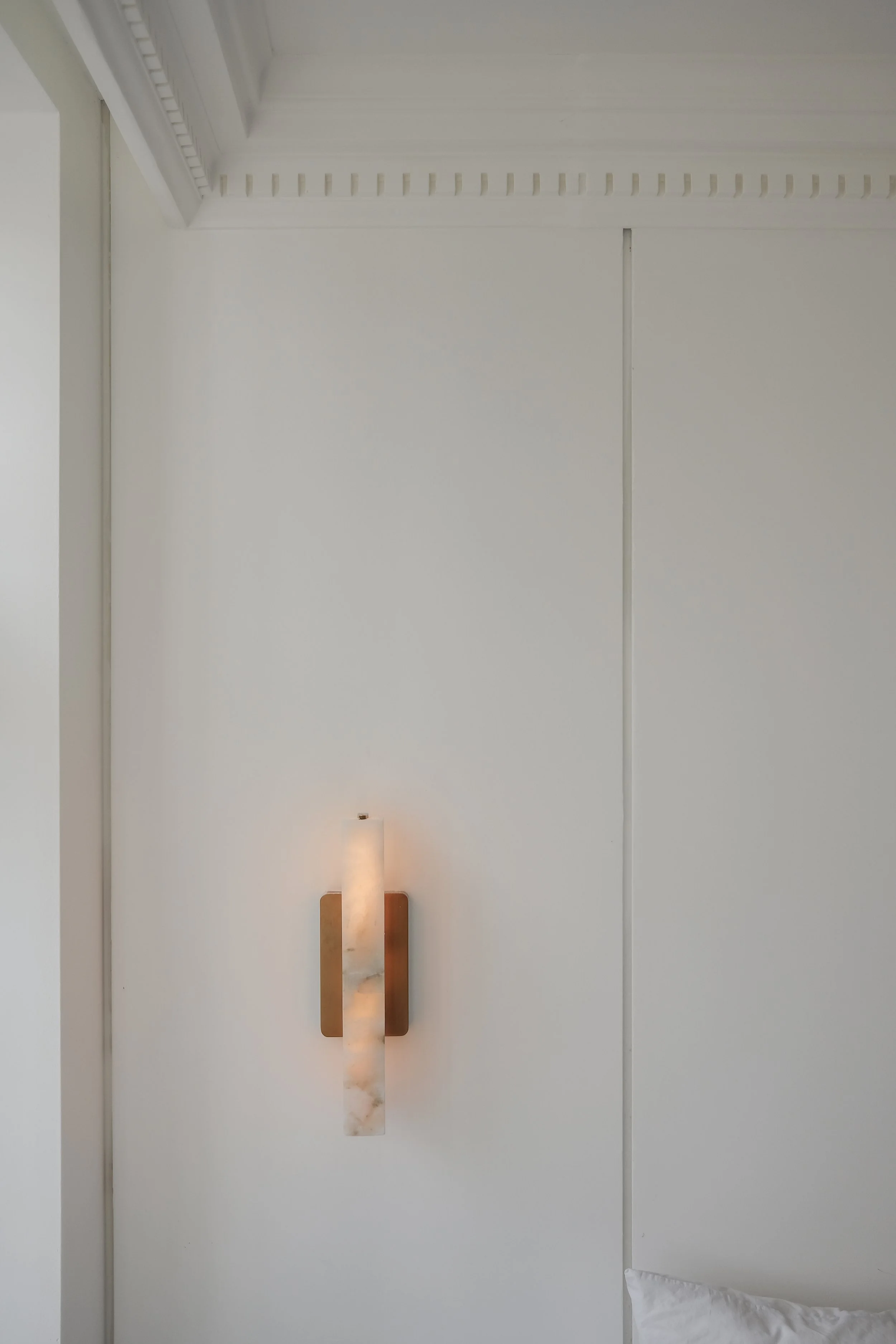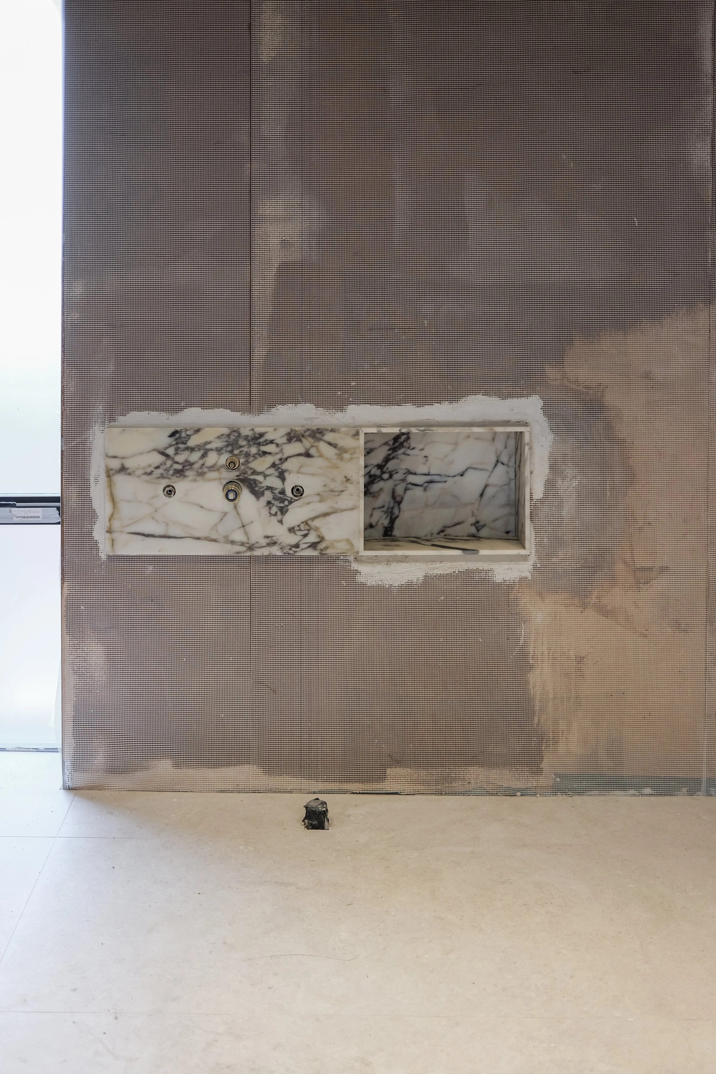 More updates to the master bedroom to come, but here are some sneak peaks of the details such as vertical shadow gaps along the wall to give the wall depth and enhance the feature headboard design that is currently underway. Elegant marble and brass fittings to hardware and lighting to refine the space.