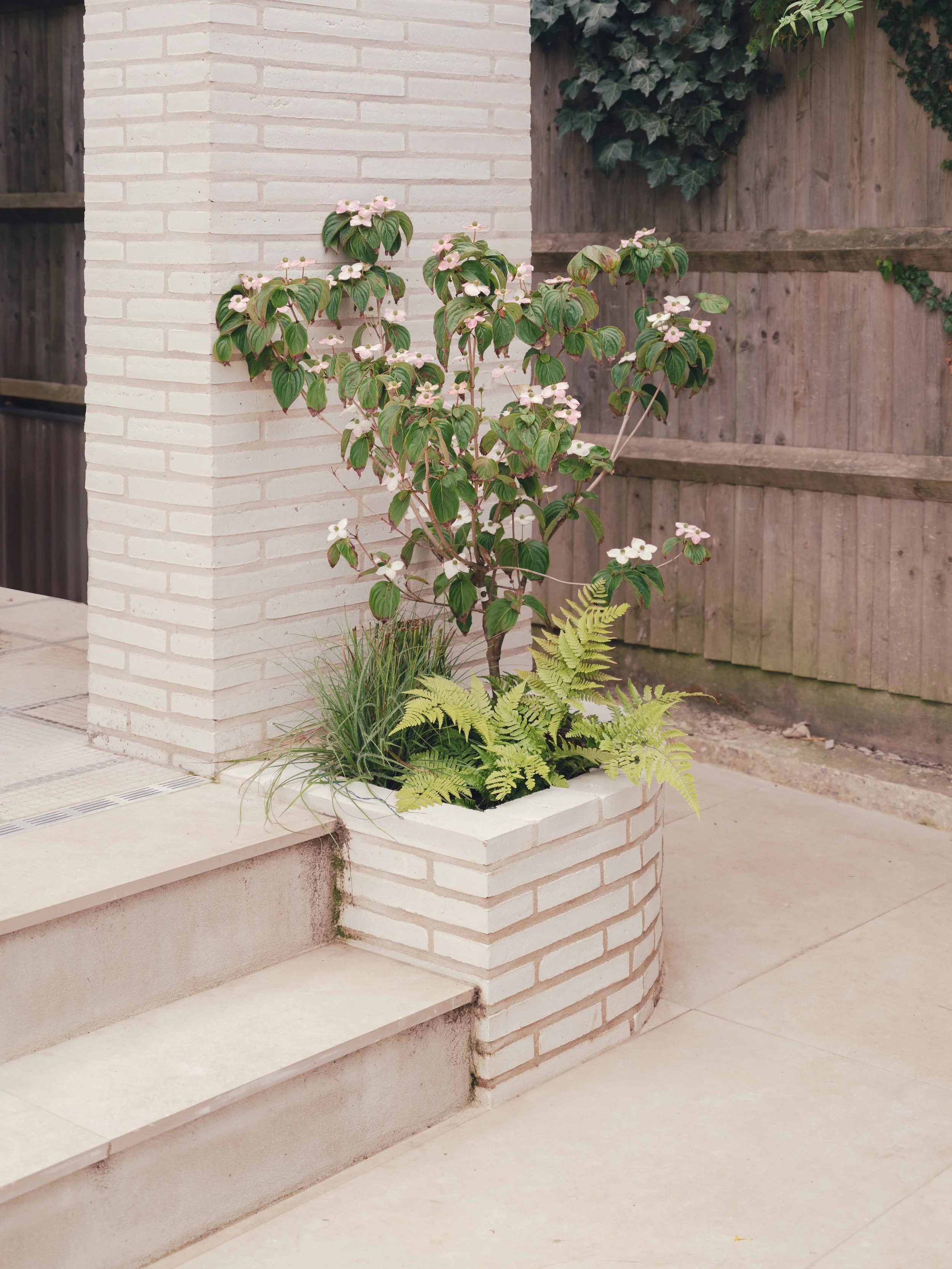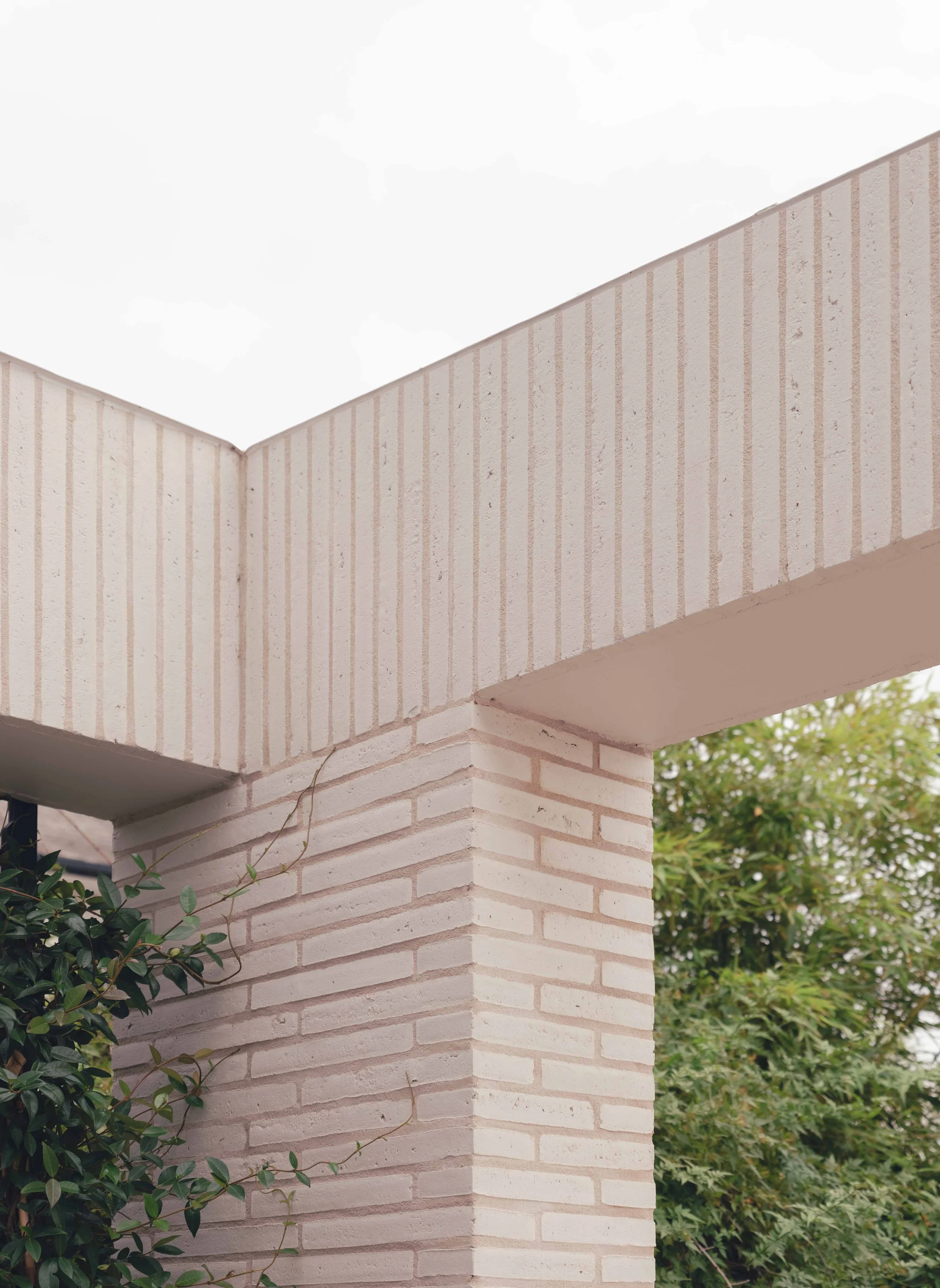 Materially, the extension employs white handmade clay roman bricks - long-format linear bricks carefully selected to complement rather than compete with the original dwelling. These elongated bricks were precisely set out to create a harmonious dialogue between old and new. Brick pillars and beams form an intimate courtyard space, punctuated by carefully positioned openings that frame views whilst providing welcome shade during summer months. Crittall-style fenestration adds distinction to the contemporary whilst remaining entirely sympathetic to the heritage context.
