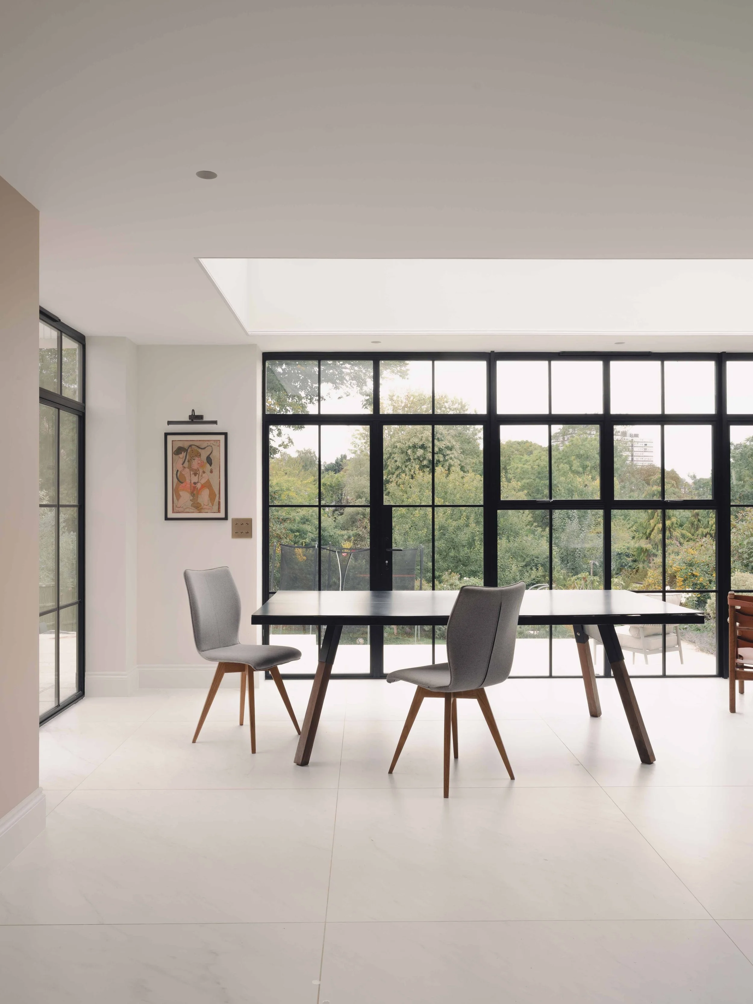 The property occupies an attractive position, with its rear garden sloping gracefully towards the iconic Wimbledon tennis lawns - a view that became central to the design vision. When the clients approached the studio, they sought something rather daring: a contemporary addition that would both respect the traditional character of their home and provide their family with an elegant, living environment complete with that essential 'wow' factor.